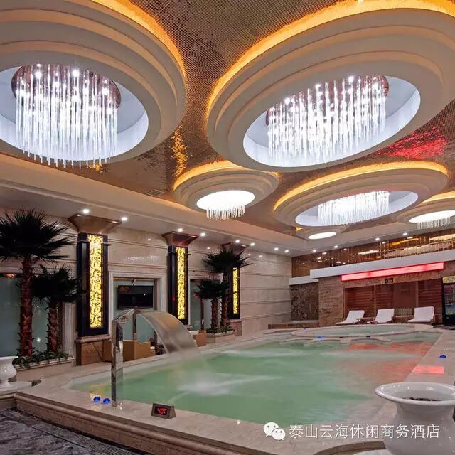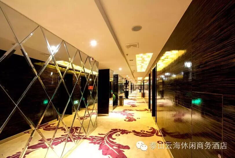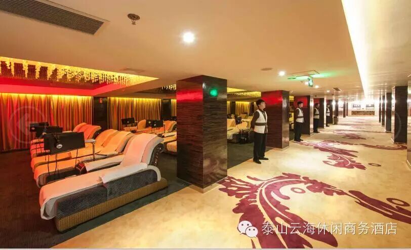 泰山云海休闲商务酒店是按四星级标准全面装修的一家集洗浴、休闲、娱乐、餐饮、住宿于一体的大型休闲场所,总营业面积15000平方米,可同时接待两千余人,是目前泰安同行业最具规模休闲场所。酒店坐落于虎山路北首150号,西邻岱庙,南依东湖公园,北邻银座购物商城,地理位置优越,环境优雅。为您提供最完善的休息放松空间,是各届商务人士洽谈、休闲、住宿、舒展心情的好去处。
