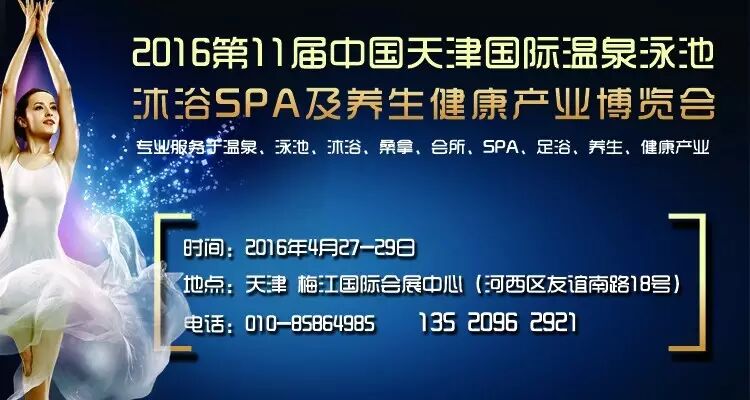 2016第十一届天津国际温泉泳池沐浴SPA养生健康博览会专业服务于温泉、泳池、沐浴、桑拿、会所、SPA、足浴、养生、健康产业时间:2016.4.27-29 地点:天津 梅江会展中心S2展馆